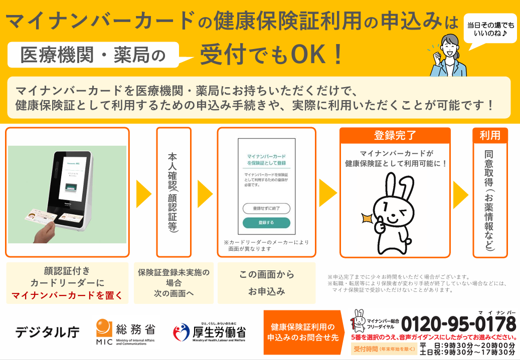 制度の詳細やマイナ保険証の取得方法については、厚生労働省の公式サイトをご確認いただくか、当院受付までお気軽にお問い合わせください。