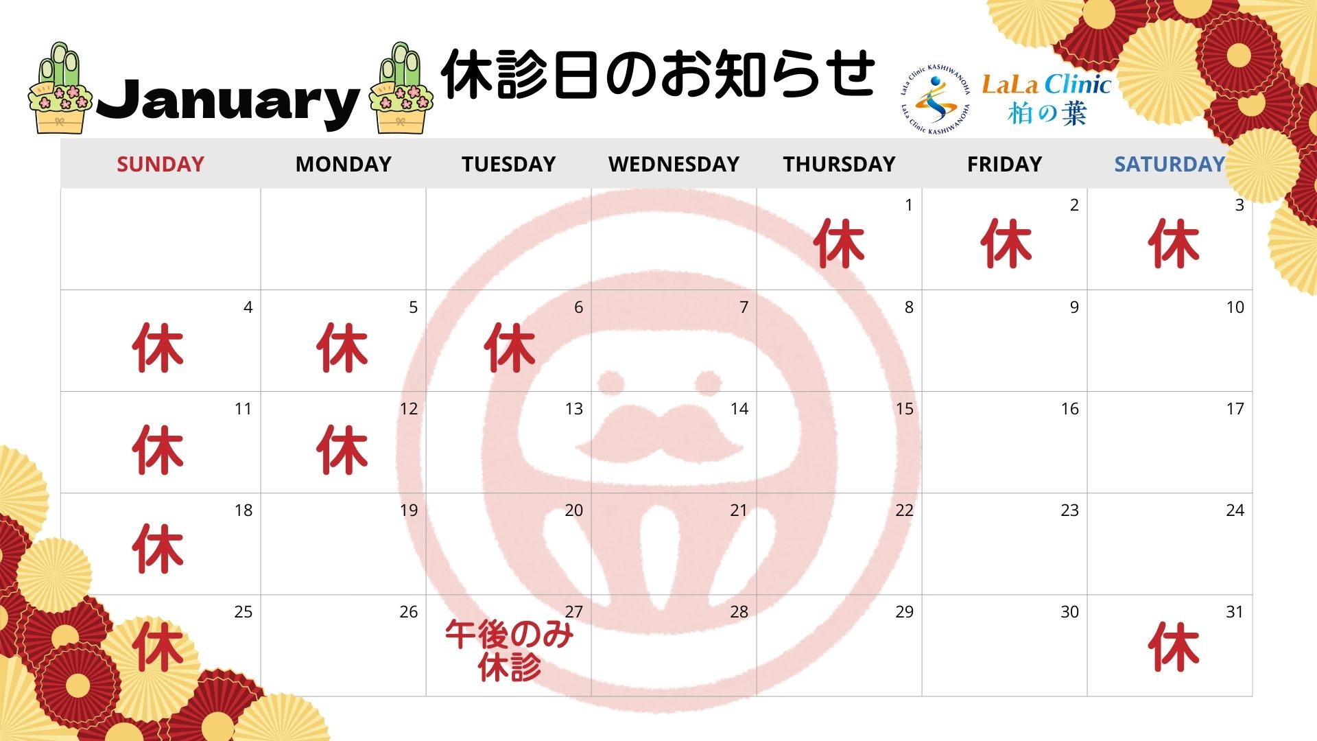 【1月の休診日のお知らせ】